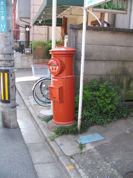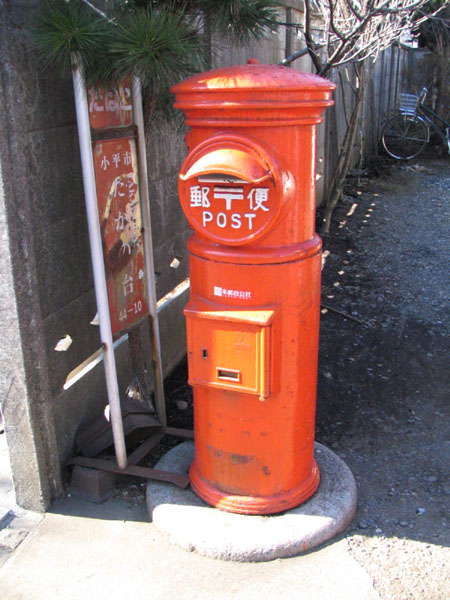 | 小平市の鷹の台駅近くにあった丸形ポスト。 |