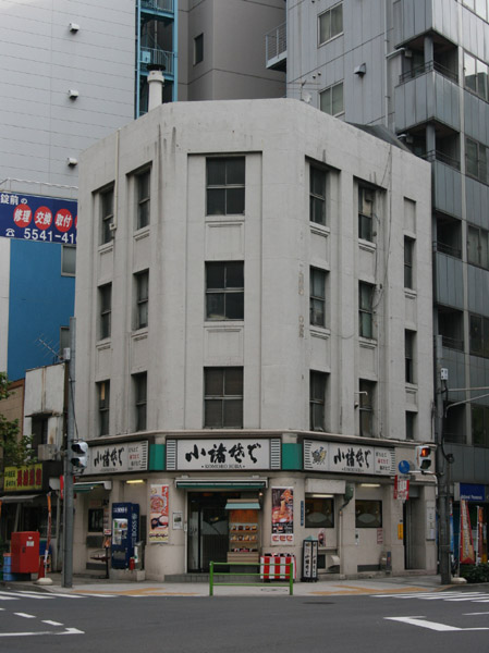 中央区八丁堀の桜橋交差点角に立つビルが三福ビルです。昭和5年建築。さりげなく残っているという感じですね。