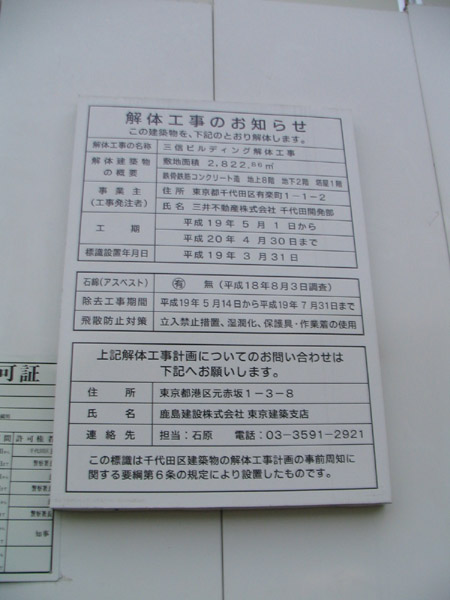 残念なことに、これも解体されてしまいました。こういうところは全く保存しようとしない文化庁と東京都には脱帽です。