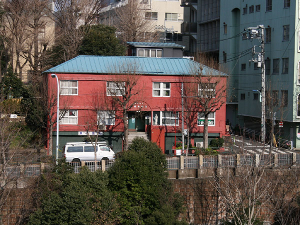 文京区の南端、皇居外堀沿いの道路に面して建つピンク色の建物。聖母美術院。