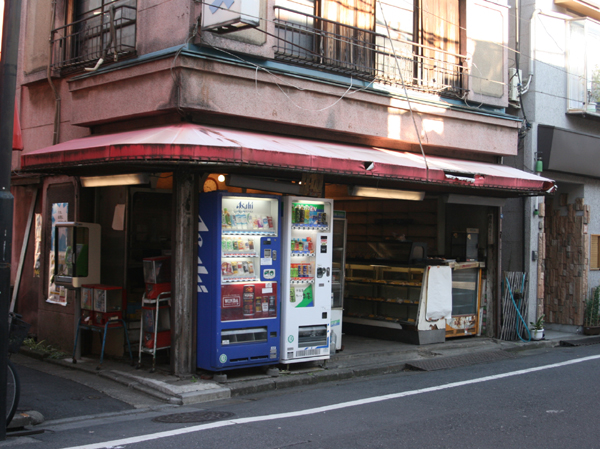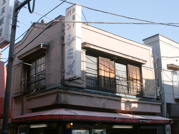 1階は商店街によくあるお店ですが、2階部分はレトロなデザインになっています。
