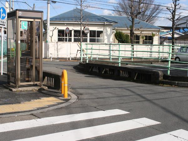 道路の間にある駐車場。おそらくここは元は川で、そこに架かっている橋だったのだろうと思います。