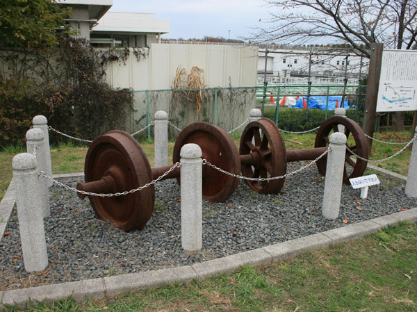 これは終戦直後に近くの八高線鉄橋上で起こった列車衝突事故の時の機関車のものと思われる車輪です。