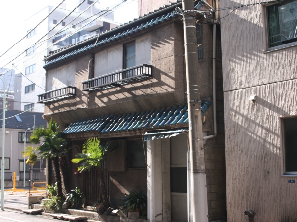 民家風の建物です。所々に瓦屋根があるモルタルづくり。