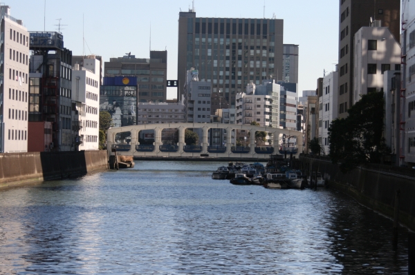日本橋川河口にかかる橋で、関東大震災で崩壊したあと、復興時に架けられた「復興橋」の一つ。