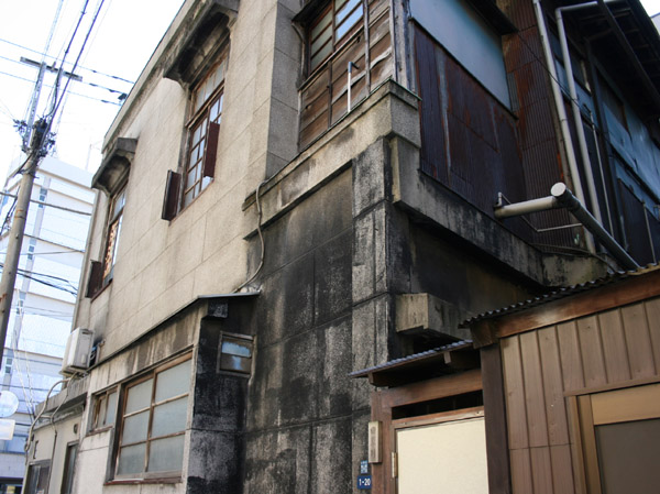 同潤会上野下アパートそばの表通り沿いに立つ商店。庇の上の彫刻など細かい特徴が。これは戦前でしょう。