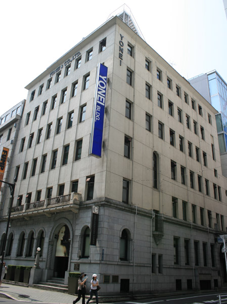 銀座2丁目の通り沿いにあるノスタルジックなビル。これがヨネイの本社ヨネイビルです。