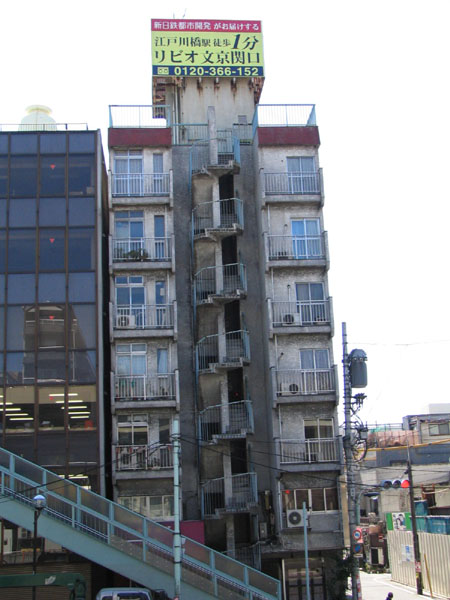 江戸川橋付近の雑居ビル。いい感じに古くなってます。